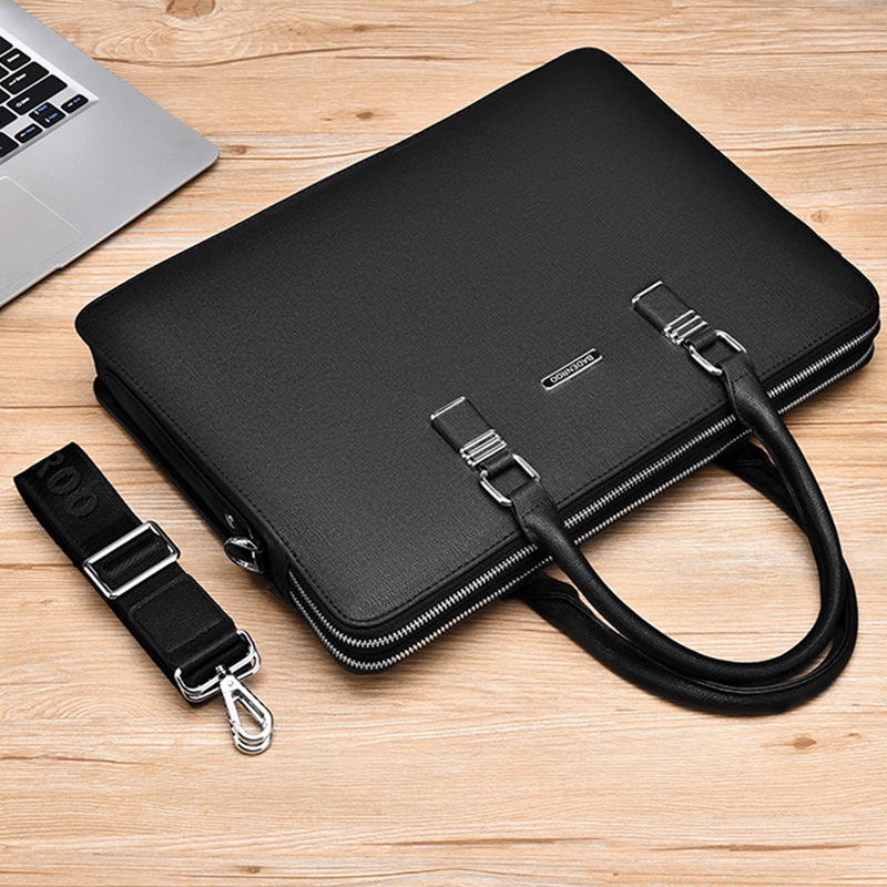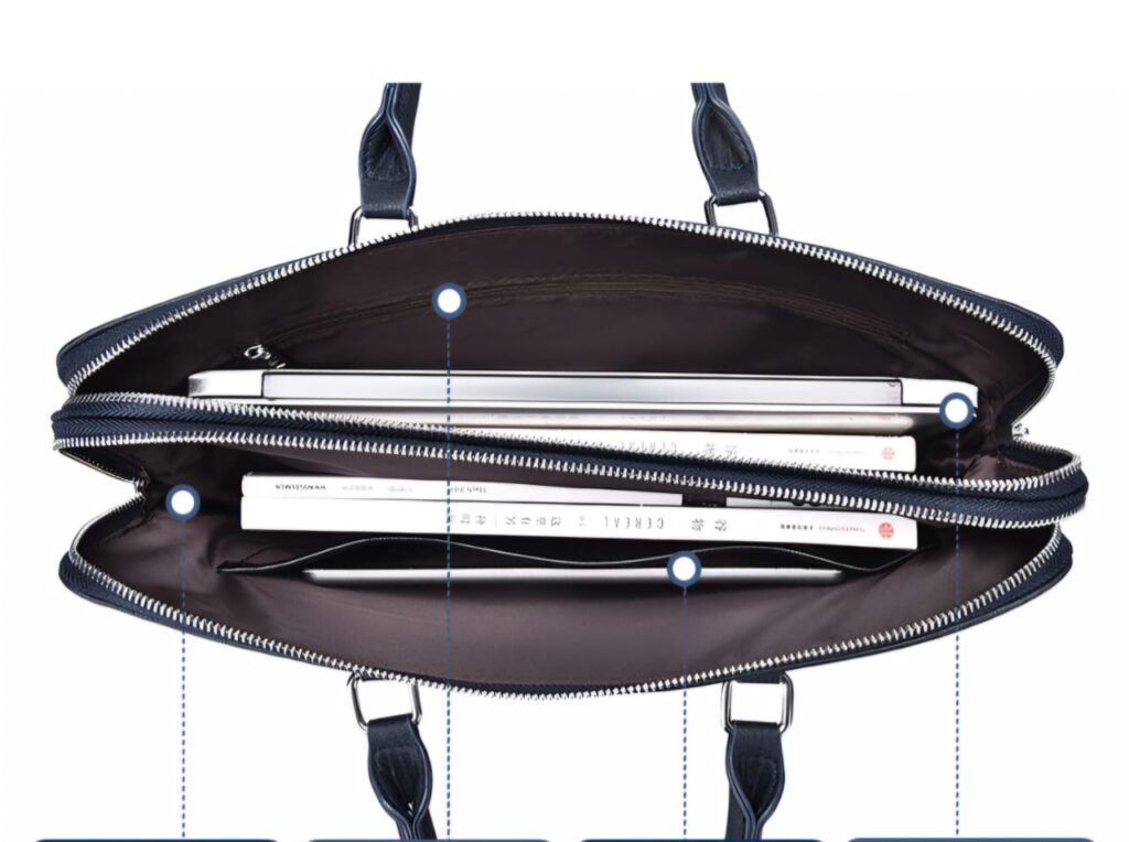 Bandenroo Double Zipper Leather Laptop Business Bag