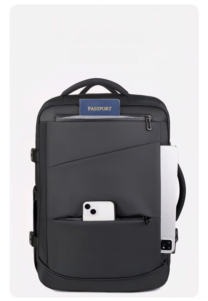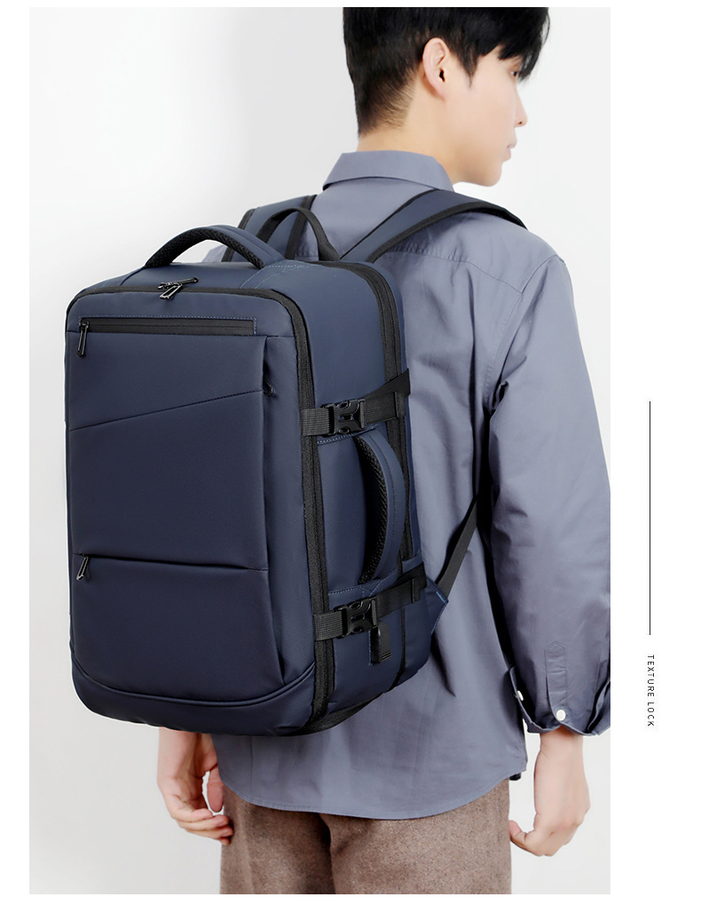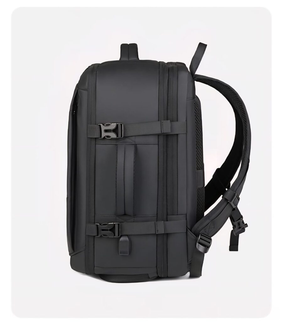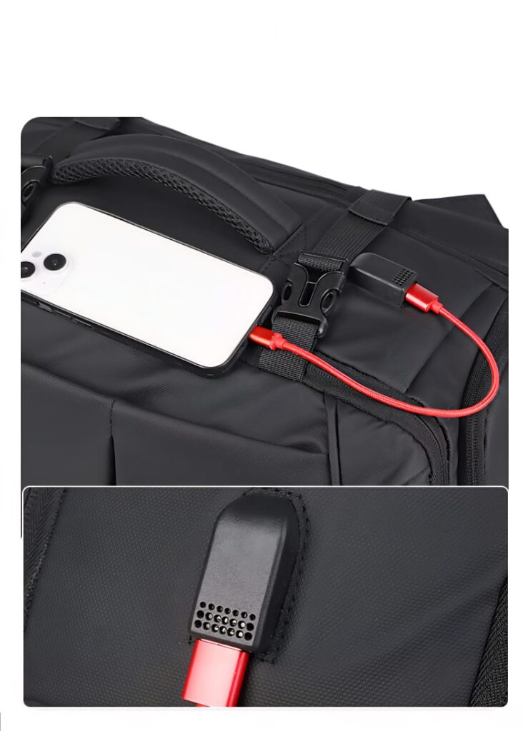 Travel and daily routine backpack with expandable features designed for convenience and versatility. It features a dedicated shoe compartment, multiple organized pockets, and a USB charging port to keep your devices powered on the go. Built with waterproof material, this backpack is perfect for weekend trips,  or everyday commuting—combining style, durability, and functionality in one.